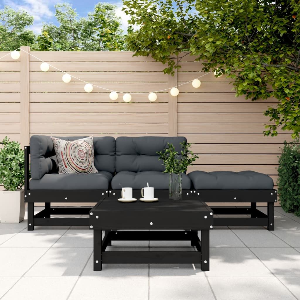 This wooden garden lounge set, standing out with the slatted design and soft cushions, will make a great addition to your garden, patio, or terrace for enjoying a cosy time with your family or friends. Solid pine wood: Solid pine wood is a beautiful natural material. Pine wood has a straight grain, and the knots give the material its signature, rustic look.Sturdy and stable frame: The wooden frame makes the lounge set sturdy and stable for daily outdoor use.Comfortable seat experience: The backrest and armrest add extra seating comfort for the garden furniture set. Also, the thickly padded cushions provide comfort for your sitting time.Modular design: The sofa set is flexible and easy to move around. You can combine it with other modular segments in the webshop to create your own personal garden lounge set configurations! Good to know:To make sure your outdoor furniture stays beautiful, we recommend protecting it with a waterproof cover.