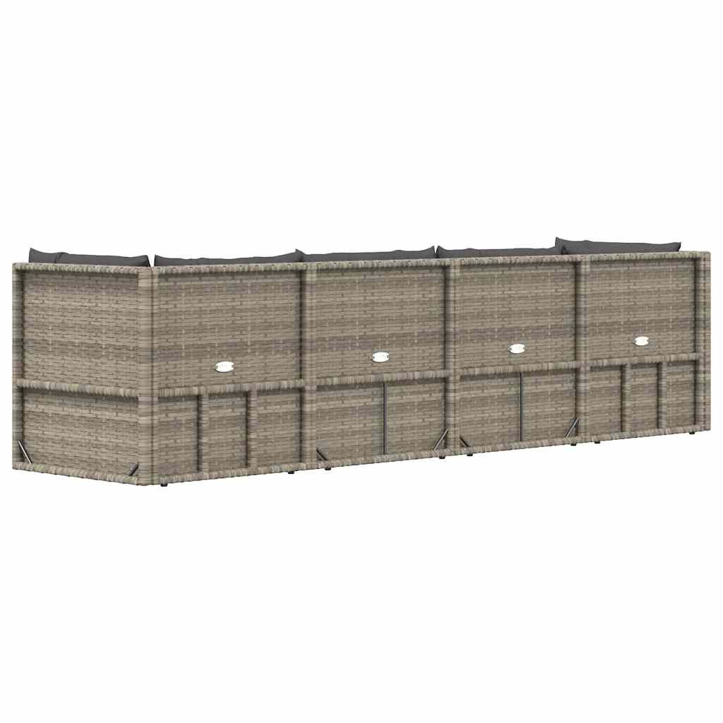 This trendy garden lounge set, featuring an elegant and contemporary design, is a great choice for relaxing in your garden. Durable material: PE rattan, also known as poly rattan, is weather resistant and easy to clean. It remains beautiful on the outside for a long period of time. It's more economical than other materials, while offering great quality, convenience and an aesthetic look.Stable frame: Steel is an exceptionally hard and strong material. It offers sturdiness and stability. The powder coating on steel creates a protective layer against wear and tear.Modular design: Each piece is easy to move around, which makes it easy for you to create different layouts that fit your needs. You can also find the single items in our webshop to arrange your own furniture patterns.Adjustable seat: The seat of the corner sofa can be adjusted at 3 angles for more comfortable sitting or lying position.Comfortable seat experience: With the thickly padded seat and back cushions, the outdoor lounge set is highly comfortable. Good to know:To make assembly as easy as possible, each product is delivered with a manual. Note:To make sure your outdoor furniture stays beautiful, we recommend protecting it with a waterproof cover.