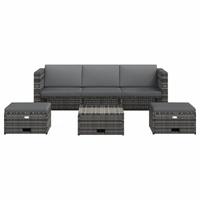 This rattan sofa set combines style and functionality, and will become the focal point of your garden or patio. The whole furniture set is designed to be used outdoors year-round. Thanks to the weather-resistant and waterproof PE rattan, the sofa set is easy to clean, hardwearing and suitable for daily use. The tempered glass tabletop is also very easy to clean with a damp cloth. The seat set features a sturdy powder-coated steel frame, which is highly durable. It is also lightweight, which makes the modular set easy to move around. The thick, removable seat and back cushions are highly comfortable and washable. The table and ottomans with ample storage space will get your magazines, knick-knacks, and other items organised and within reach. The table and ottomans neatly fit under the sofa and can be easily pulled out or pushed back when not in use to save space. This set is easy to assemble. Delivery includes 1 sofa, 1 table, 2 ottomans, and 8 cushions. Note: We recommend covering the set in the rain, snow and frost.