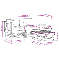 This wooden garden lounge set, standing out with the slatted design and soft cushions, will make a great addition to your garden, patio, or terrace for enjoying a cosy time with your family or friends. Solid pine wood: Solid pine wood is a beautiful natural material. Pine wood has a straight grain, and the knots give the material its signature, rustic look.Sturdy and stable frame: The wooden frame makes the lounge set sturdy and stable for daily outdoor use.Comfortable seat experience: The backrest and armrest add extra seating comfort for the garden furniture set. Also, the thickly padded cushions provide comfort for your sitting time.Modular design: The sofa set is flexible and easy to move around. You can combine it with other modular segments in the webshop to create your own personal garden lounge set configurations! Good to know:To make sure your outdoor furniture stays beautiful, we recommend protecting it with a waterproof cover.