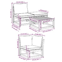 This wooden garden lounge set with cushions has an elegant design and is a great choice for relaxing and enjoying in the garden or patio. Solid acacia wood: Solid acacia wood is a beautiful natural material. Acacia wood is a tropical hardwood, which is dense, sturdy, and durable.Comfortable seat experience: The backrest and the thickly-padded cushions make the garden sofa set more comfortable to sit on.Slatted design: The slatted design of the wooden lounge set effectively prevents water from pooling, ensuring that the seat remains dry and free from potential rot.Modular design: This outdoor furniture set has a modular design, making it completely flexible and easy to move around, so you can create a customised outdoor furniture arrangement. Good to know:To make sure your outdoor furniture stays beautiful, we recommend protecting it with a waterproof cover.