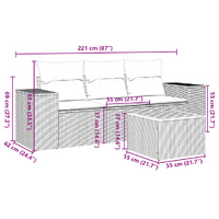 This garden sofa set is the perfect addition to your backyard, terrace, or patio, providing a comfortable and inviting space for chatting with family and friends or simply relaxing and enjoying the outdoors. Durable material: PE rattan, also known as poly rattan, is a strong, low-maintenance synthetic material that looks like natural rattan. It's lightweight, easy to clean, and commonly used for outdoor furniture due to its durability and weather-resistant properties.Stable and easy-to-clean tabletop: This garden table has an acacia wood top that is sturdy, durable, and easy to clean with a damp cloth. Comfortable seat experience: This outdoor furniture, complete with thickly padded cushions, offers a comfortable seating experience. Removable and washable cover: These seat cushions feature removable covers for easy washing and maintenance.Modular design: This outdoor furniture set has a modular design, making it completely flexible and easy to move around, so you can create a customised outdoor furniture arrangement. Good to know:To make sure your outdoor furniture stays beautiful, we recommend protecting it with a waterproof cover.