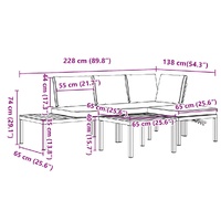 This garden sofa set is the perfect addition to your backyard, terrace, or patio, providing a comfortable and inviting space for chatting with family and friends or simply relaxing and enjoying the outdoors. Long-lasting and sturdy: The outdoor sofa set has an aluminium construction, making it durable and long-lasting.Sturdy top: The sturdy tabletop of the patio table is ideal for placing your drinks or any other necessities you need close at hand.Adjustable seat panel: The seat panel of the outdoor stool can be lifted up as per your preference.Removable and washable cover: These seat cushions feature removable covers for easy washing and maintenance.Modular design: This outdoor furniture set has a modular design, making it completely flexible and easy to move around, so you can create a customised outdoor furniture arrangement. Good to know:To make sure your outdoor furniture stays beautiful, we recommend protecting it with a waterproof cover.