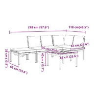 This garden sofa set is the perfect addition to your backyard, terrace, or patio, providing a comfortable and inviting space for chatting with family and friends or simply relaxing and enjoying the outdoors. Long-lasting and sturdy: The outdoor sofa set has an aluminium construction, making it durable and long-lasting.Sturdy top: The sturdy tabletop of the patio table is ideal for placing your drinks or any other necessities you need close at hand.Adjustable seat panel: The seat panel of the outdoor stool can be lifted up as per your preference.Removable and washable cover: These seat cushions feature removable covers for easy washing and maintenance.Modular design: This outdoor furniture set has a modular design, making it completely flexible and easy to move around, so you can create a customised outdoor furniture arrangement. Good to know:To make sure your outdoor furniture stays beautiful, we recommend protecting it with a waterproof cover.