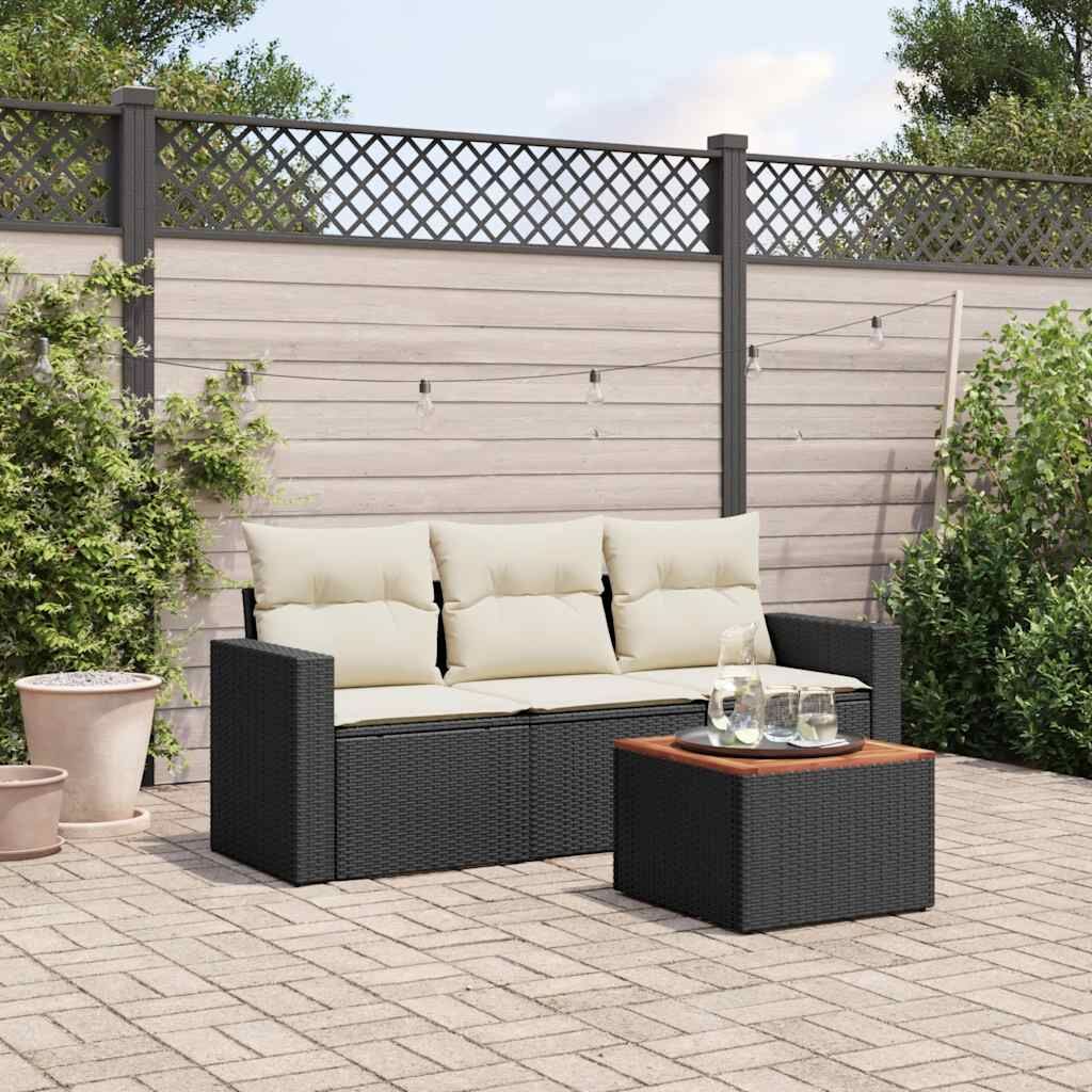 This garden sofa set is the perfect addition to your backyard, terrace, or patio, providing a comfortable and inviting space for chatting with family and friends or simply relaxing and enjoying the outdoors. Durable material: PE rattan, also known as poly rattan, is a strong, low-maintenance synthetic material that looks like natural rattan. It's lightweight, easy to clean, and commonly used for outdoor furniture due to its durability and weather-resistant properties.Storage function with water-resistant bag: Each garden seat features storage space under the seat, complete with a water-resistant bag for storing cushions, toys, and other items. The inner bags have a top cover and can be securely fastened to the seats with hook-and-loop fasteners for added stability.Stable and easy-to-clean tabletop: This garden table has an acacia wood top that is sturdy, durable, and easy to clean with a damp cloth.Removable and washable cover: These seat cushions feature removable covers for easy washing and maintenance.Modular design: This outdoor furniture set has a modular design, making it completely flexible and easy to move around, so you can create a customised outdoor furniture arrangement. Good to know:To make sure your outdoor furniture stays beautiful, we recommend protecting it with a waterproof cover.