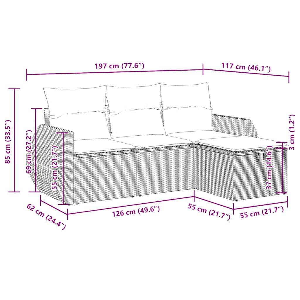 This garden sofa set is the perfect addition to your backyard, terrace, or patio, providing a comfortable and inviting space for chatting with family and friends or simply relaxing and enjoying the outdoors. Durable material: PE rattan, also known as poly rattan, is a strong, low-maintenance synthetic material that looks like natural rattan. It's lightweight, easy to clean, and commonly used for outdoor furniture due to its durability and weather-resistant properties.Storage function with water-resistant bag: The garden furniture features storage space under the seat, complete with a water-resistant bag for storing cushions, toys, and other items. The inner bag can be securely fastened to the outdoor furniture with hook-and-loop fasteners for added stability.Versatile footstool: The stool is versatile, serving as a comfortable footrest for when you're lounging on the sofa or as an extra seat in your garden.Removable and washable cover: These seat cushions feature removable covers for easy washing and maintenance.Modular design: This outdoor furniture set has a modular design, making it completely flexible and easy to move around, so you can create a customised outdoor furniture arrangement. Good to know:To make sure your outdoor furniture stays beautiful, we recommend protecting it with a waterproof cover.