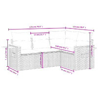 This garden sofa set is the perfect addition to your backyard, terrace, or patio, providing a comfortable and inviting space for chatting with family and friends or simply relaxing and enjoying the outdoors. Durable material: PE rattan, also known as poly rattan, is a strong, low-maintenance synthetic material that looks like natural rattan. It's lightweight, easy to clean, and commonly used for outdoor furniture due to its durability and weather-resistant properties.Storage function with water-resistant bag: The garden furniture features storage space under the seat, complete with a water-resistant bag for storing cushions, toys, and other items. The inner bag can be securely fastened to the outdoor furniture with hook-and-loop fasteners for added stability.Convenient side table: This outdoor furniture features a foldable side table with a gas spring on the armrests, providing a convenient spot to keep your essentials within easy reach.Removable and washable cover: These seat cushions feature removable covers for easy washing and maintenance.Modular design: This outdoor furniture set has a modular design, making it completely flexible and easy to move around, so you can create a customised outdoor furniture arrangement. Good to know:To make sure your outdoor furniture stays beautiful, we recommend protecting it with a waterproof cover.