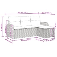This garden sofa set is the perfect addition to your backyard, terrace, or patio, providing a comfortable and inviting space for chatting with family and friends or simply relaxing and enjoying the outdoors. Durable material: PE rattan, also known as poly rattan, is a strong, low-maintenance synthetic material that looks like natural rattan. It's lightweight, easy to clean, and commonly used for outdoor furniture due to its durability and weather-resistant properties.Storage function with water-resistant bag: The garden furniture features storage space under the seat, complete with a water-resistant bag for storing cushions, toys, and other items. The inner bag can be securely fastened to the outdoor furniture with hook-and-loop fasteners for added stability.Versatile footstool: The stool is versatile, serving as a comfortable footrest for when you're lounging on the sofa or as an extra seat in your garden.Removable and washable cover: These seat cushions feature removable covers for easy washing and maintenance.Modular design: This outdoor furniture set has a modular design, making it completely flexible and easy to move around, so you can create a customised outdoor furniture arrangement. Good to know:To make sure your outdoor furniture stays beautiful, we recommend protecting it with a waterproof cover.