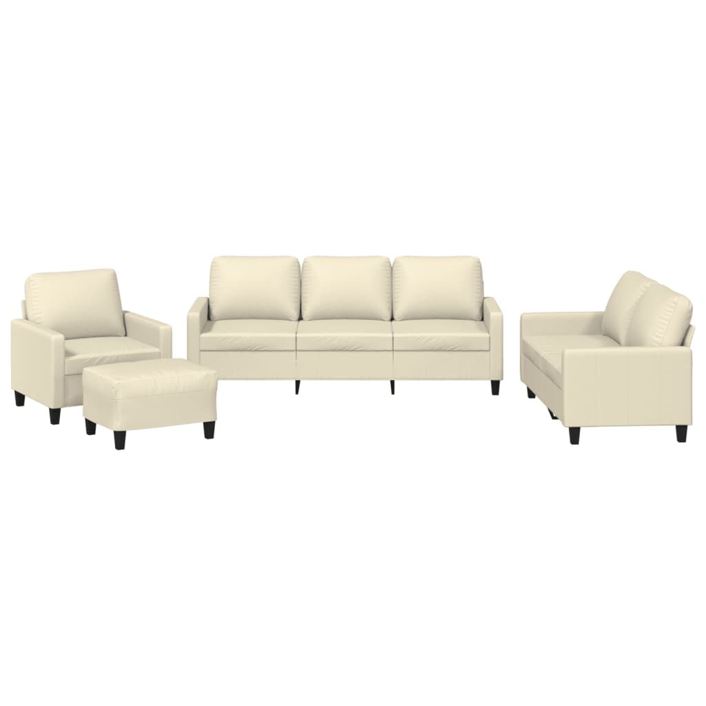 This sofa set is an excellent place for chatting, reading, watching TV or just relaxing. It is meant to be a focal point in your home. Durable faux leather: Premium faux leather is a highly durable material. It is resistant to stain, making it easy to clean with a damp cloth. The smooth surface also gives a luxurious look and the beauty of real leather.Sturdy and stable frame: The plywood and metal frame of the sofa seating ensures sturdiness and stability.Comfortable seat experience: The sofa is highly comfortable with the thickly padded seat, armrests and back pillow.Versatile footstool: The footstool is suitable for resting your feet when you lie on a sofa, or offering you an additional seat in your room. Additionally, the simple design and compact size make it ideal for almost all your living spaces.