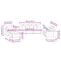 This sofa set is an excellent place for chatting, reading, watching TV or just relaxing. It is meant to be a focal point in your home. Durable fabric: The fabric features a simple and clean look while remaining breathable and long-lasting.Sturdy and stable frame: The plywood and metal frame of the sofa seating ensures sturdiness and stability.Comfortable seat experience: The sofa is highly comfortable with the thickly padded seat, armrests and back pillows.Practical couch pillows: These square throw pillows not only spruce up your decor, but can also add extra comfort when you are seated or lying.Versatile footstool: The footstool is suitable for resting your feet when you lie on a sofa, or offering you an additional seat in your room. Additionally, the simple design and compact size make it ideal for almost all your living spaces.