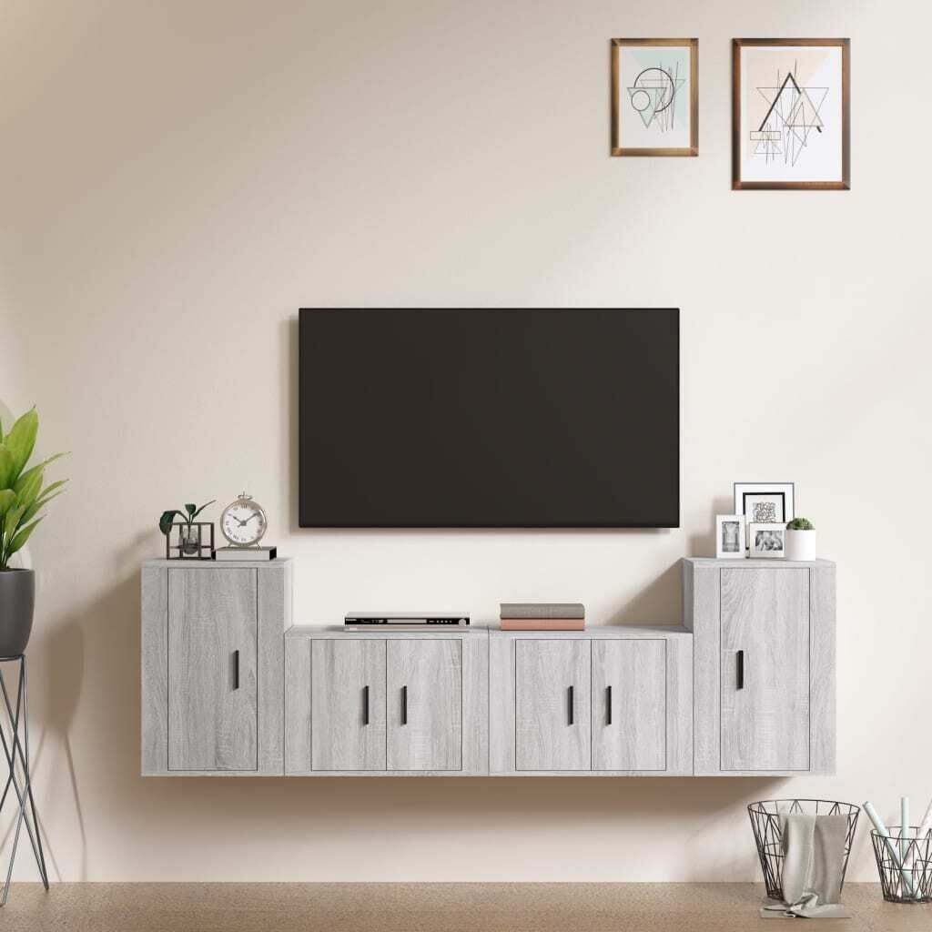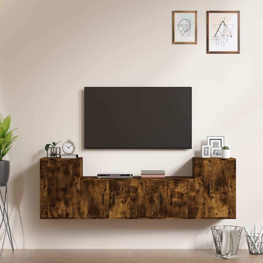 $224.65This classic TV cabinet set is designed to be a focal point of your room, featuring a trendy yet practical design. Sturdy material: The engineered wood is of exceptional quality with smooth surface and also features strength, stability and resistance to moisture.Ample storage space: The TV stand set provides ample storage space to keep all your magazines, DVDs and any other items well organised.Wall-mounted design: The TV unit doesn't take any floor space. You can hang it on the wall easily. Good to know:To make assembly as easy as possible, each product is delivered with a manual.Screws and plugs for inside the wall are not included. We advise to find and use screws and plugs suitable specifically for your walls. If you're not sure, you can consult with a professional. Please read and follow each step of the instructions.