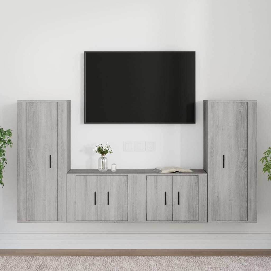 $282.93This classic TV cabinet set is designed to be a focal point of your room, featuring a trendy yet practical design. Sturdy material: The engineered wood is of exceptional quality with smooth surface and also features strength, stability and resistance to moisture. Made of engineered wood, these TV stands are easy to clean.Ample storage space: These TV units provide ample storage space to keep all your magazines, DVDs and any other items well organised.Wall-mounted design: The media cabinet doesn't take any floor space. You can hang it on the wall easily.Practical doors: Keep your essentials free from dust by hiding them behind the door of the media unit. Good to know:Screws and plugs for inside the wall are not included. We advise to find and use screws and plugs suitable specifically for your walls. If you're not sure, you can consult with a professional. Please read and follow each step of the instructions.