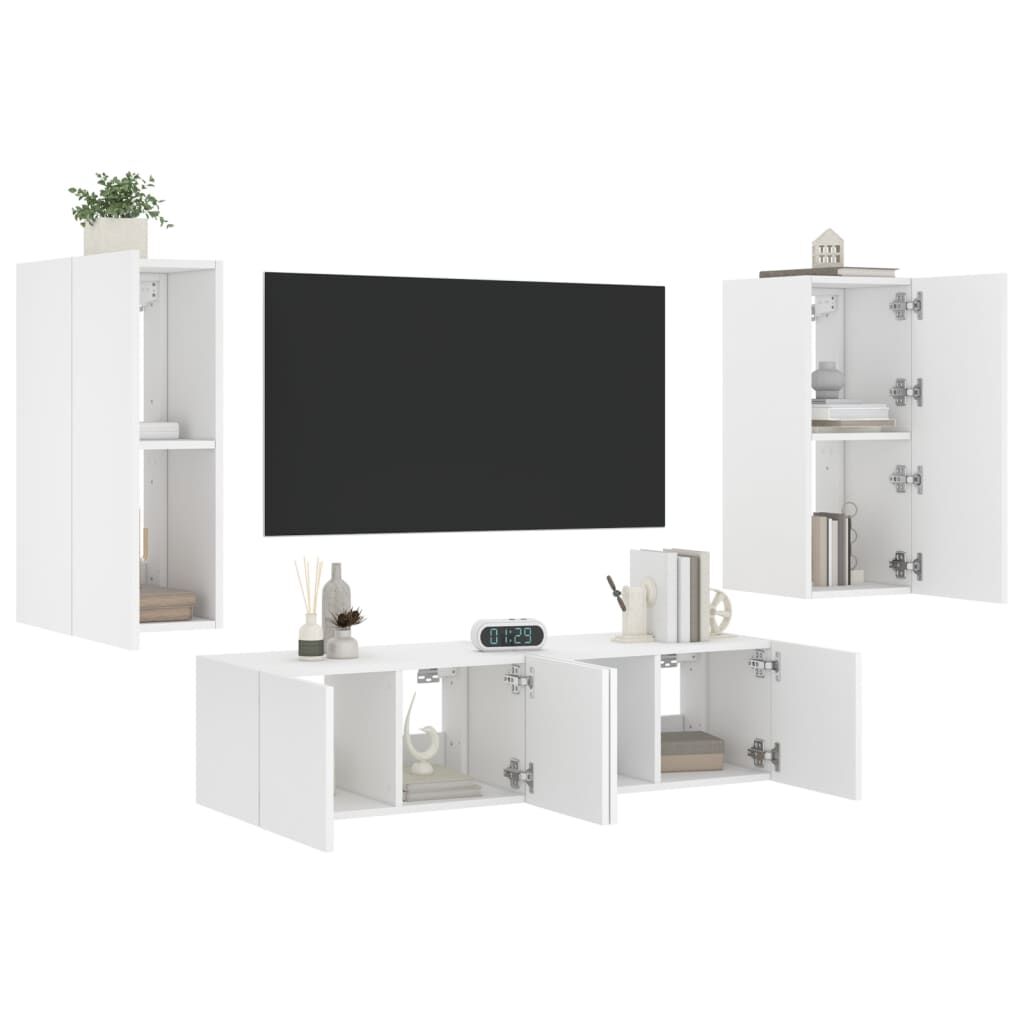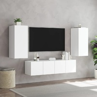 These TV wall units are the perfect solution for your living space to maximise space and keep the floor areas uncluttered. Sturdy material: The engineered wood is of exceptional quality with a smooth surface and also features strength, stability and resistance to moisture.RGB LED lights: The TV unit is equipped with vibrant RGB LED lights. With various customisable menus, you can effortlessly change the colour of the lights and even set them to adjust automatically. These LED lights not only enhance the contemporary look of the floating TV cabinet but also add to its trendy appeal.Wall-mounted design: The television unit can be wall-mounted to add extra storage space. That way, you can maximise your floor space and keep the area clean.Ample storage space: The floating TV unit provides ample space to store your daily essentials such as books, DVDs, magazines, media supplies and other items neatly organised and within easy reach.Versatile design: You can use it as a TV cabinet or mount it on the workplace wall for convenient storage of tools or other miscellaneous items. Also, it transforms an empty wall into a design feature. Good to know:Screws and plugs for inside the wall are not included. We advise to find and use screws and plugs suitable specifically for your walls. If you're not sure, you can consult with a professional. Please read and follow each step of the instructions.The product has a USB connector that requires a certified 5V USB power source (not included).