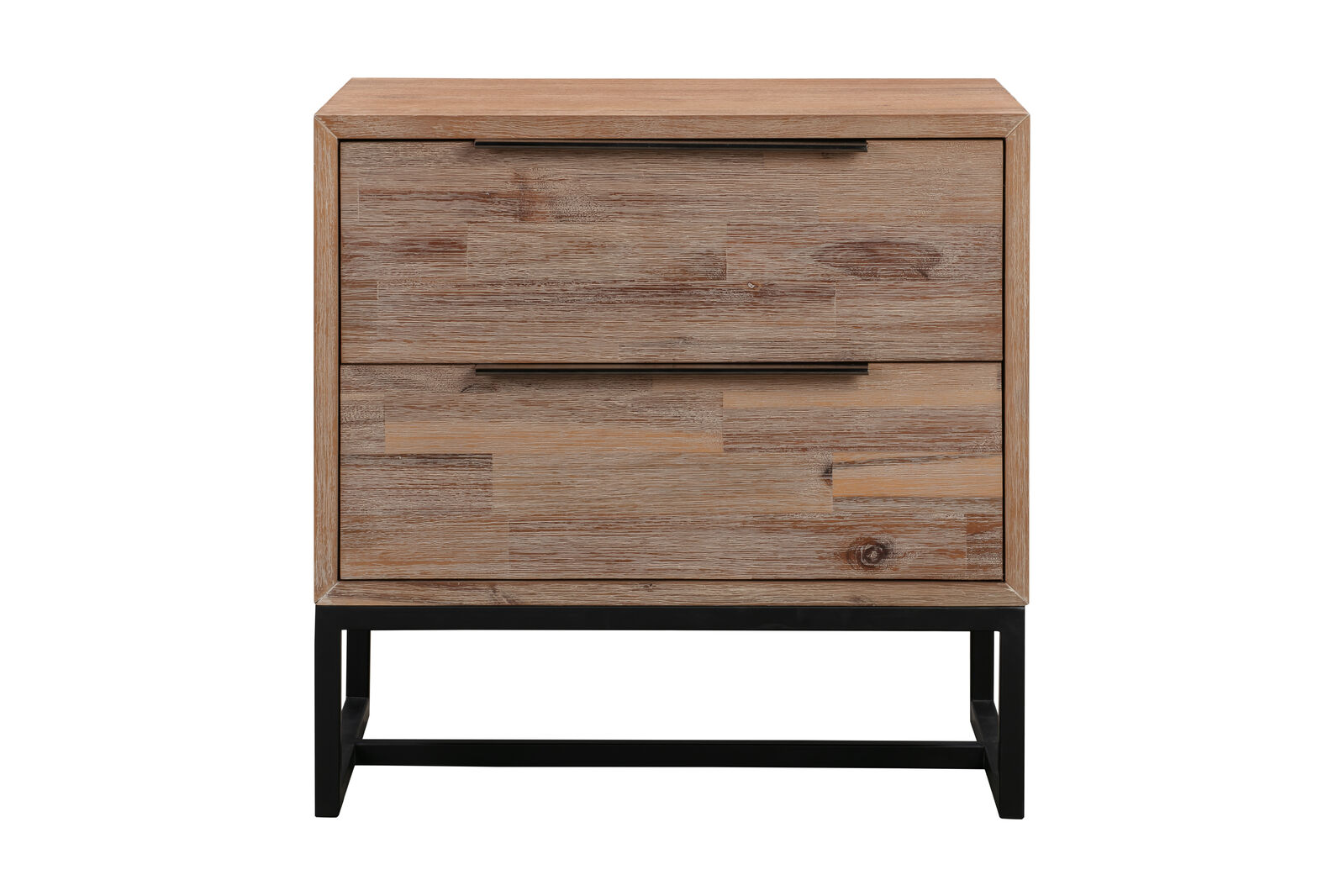 Package contents: 1X 4 Pieces Bedroom Suite made in Solid Wood Acacia Veneered Queen Size Oak Colour 1XBed, 2X Bedside Table 1XTallboy