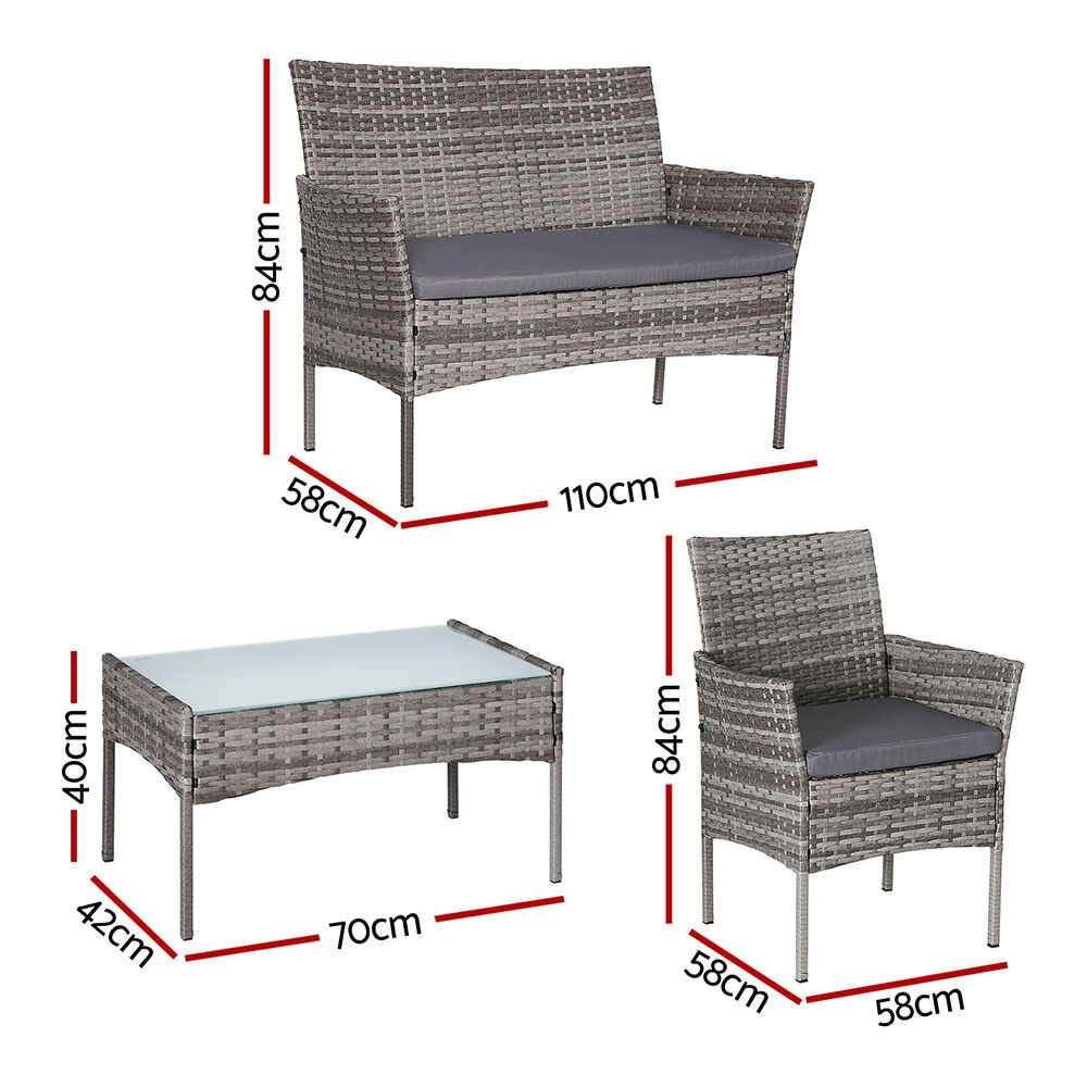 $250.97Leisure come easy with our Gardeon Outdoor Furniture Set. Crafted with UV-resistant PE wicker and a heavy-duty steel frame, this set is built to last in any weather conditions. The matching side table features a wicker border finish and a 5mm thick tempered glass top secured with suction pads for added style and durability. Enjoy maximum comfort with the high-density cotton cushions, which come with removable and washable cushion covers for easy maintenance. Suitable for both indoor and outdoor use, this sofa set is designed for convenience with easy assembly. Upgrade your patio or garden with the Gardeon Outdoor Sofa Set today!