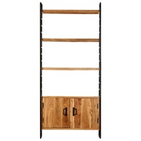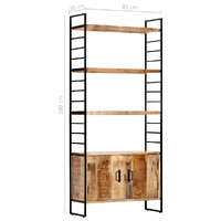 Add a touch of industrial style to your home or office with our 4-tier wooden bookcase. This bookshelf with 3 shelves and 2 doors offers an ideal solution for storing and displaying your book collection, magazines, documents or decorative items like photo frames and collectables. The bookcase features a sturdy powder-coated iron frame which gives it an industrial look. The retro shelves are made of rough mango wood, which is exceedingly stable, durable and beautiful. Every step of the process is carried out with the greatest care, be it polishing, painting or lacquering. The craftsmanship and beautiful wood grains make every piece of furniture unique and slightly different from the next. The delivery is random, ensuring the exclusivity and individuality of your product.
