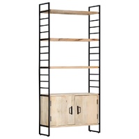 Add a touch of industrial style to your home or office with our 4-tier wooden bookcase. This bookshelf with 3 shelves and 2 doors offers an ideal solution for storing and displaying your book collection, magazines, documents or decorative items like photo frames and collectables. The bookcase features a sturdy powder-coated iron frame which gives it an industrial look. The retro shelves are made of solid mango wood, which is exceedingly stable and durable. Mango wood is a dense and robust hardwood which has beautiful brown or golden streaks and contours on its surface. Every step of the process is carried out with the greatest care, be it polishing, painting or lacquering. The colours and grains of the wood may vary from piece to piece, making each piece unique and slightly different from the next. The delivery is random, ensuring the exclusivity and individuality of your product.