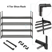 4-Tier Stainless Steel Shoe Rack Storage Organizer to Hold up to 15 Pairs of Shoes (55cm, Black)