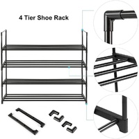 4-Tier Stainless Steel Shoe Rack Storage Organizer to Hold up to 20 Pairs of Shoes (80cm, Black)