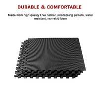 This tough and sturdy floor mat set has long-lasting durability. The floor mats are light in weight and easy to transport. You can instantly turn anywhere you go into your private gym or kids' playroom. Connected together the mats are generous in size, covering a 1.5m square area. The interlocking mats allow you to link additional sets making your workout area as large as you need.