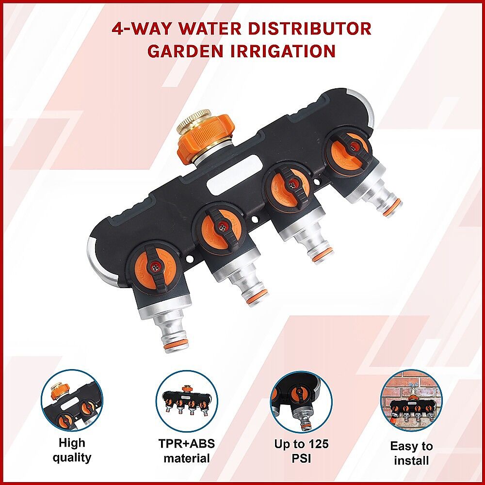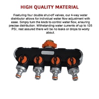 Featuring four double shut-off valves, our 4-way water distributor allows for individual water flow adjustment with ease. Simply turn the knob to control water flow, ensuring precise distribution. Withstanding water currents of up to 125 PSI, rest assured there will be no leaks or drops to worry about.