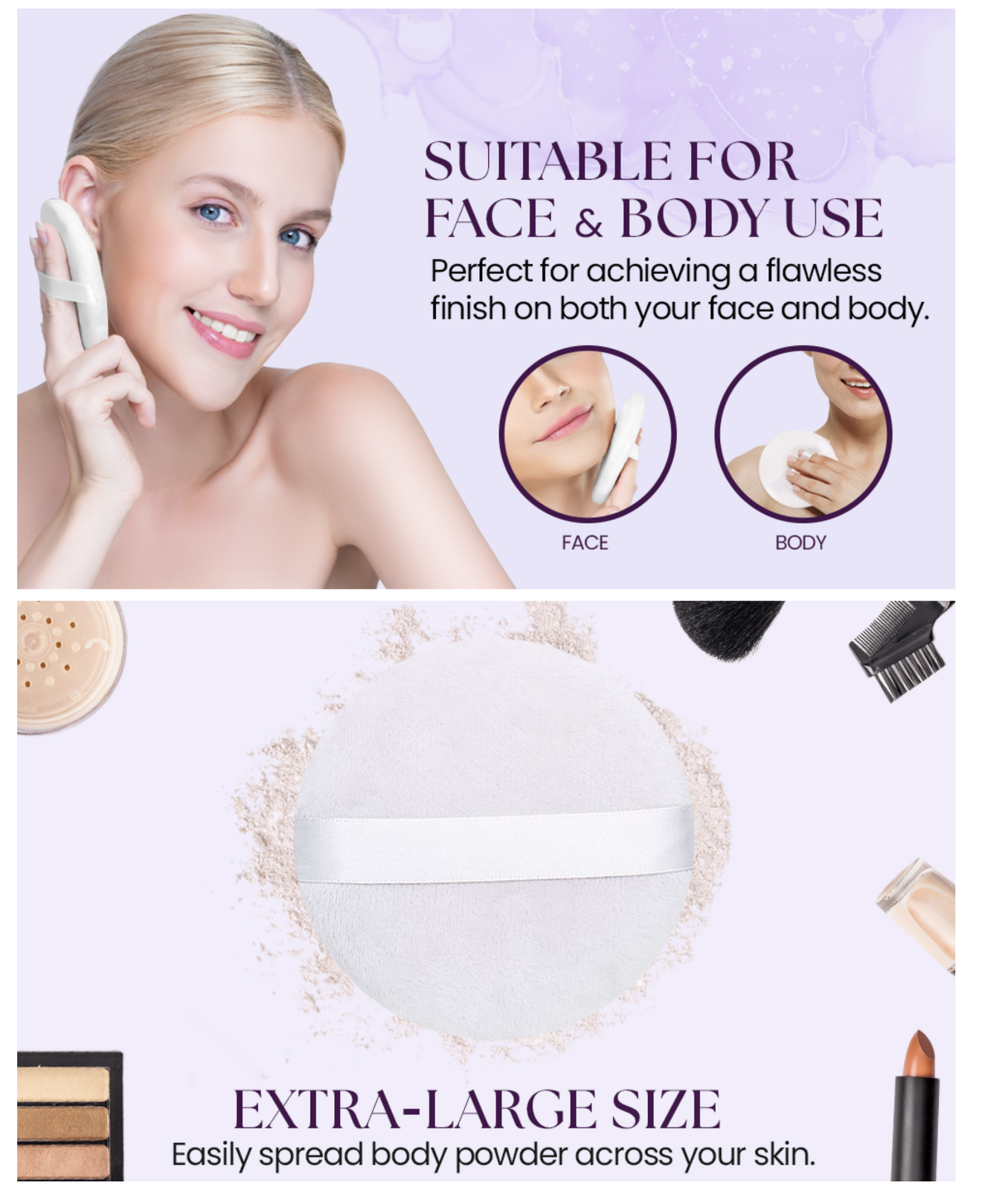 Generous 4.5-inch Size: Larger than average, our powder puff simplifies makeup application, covering more area in less time. Ideal for both face and body, it's a must-have in your makeup arsenal.