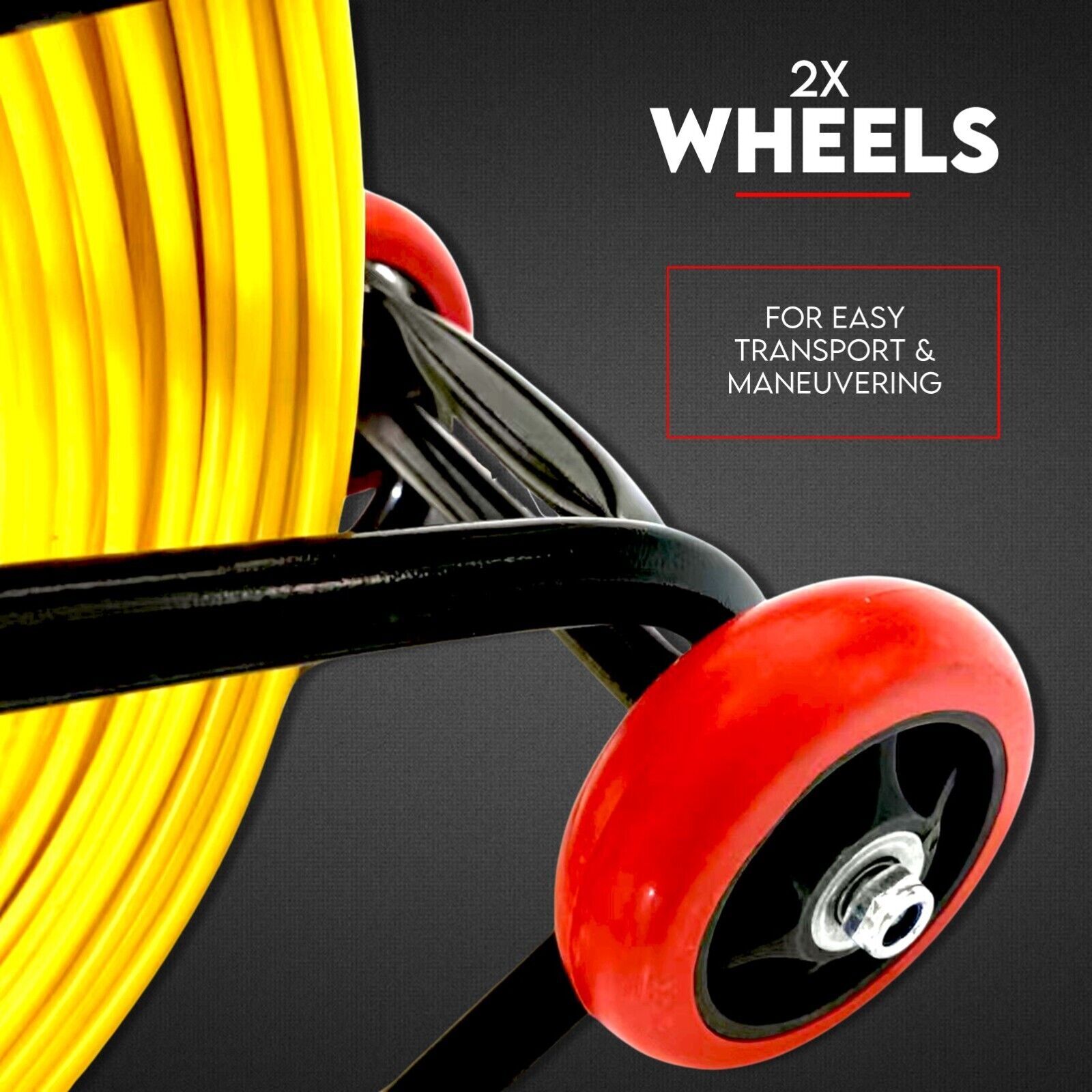 It has a length of 85m and comes in a wheeled plastic spray iron frame.