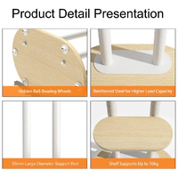 The stand features a height-adjustable mount (48.561.4) for comfortable viewing at different seating heights. Dual steel support columns ensure balanced load distribution and excellent stability. Finished in white steel with wood-grain MDF shelves, it delivers a modern minimalist look that doubles as stylish furniture.