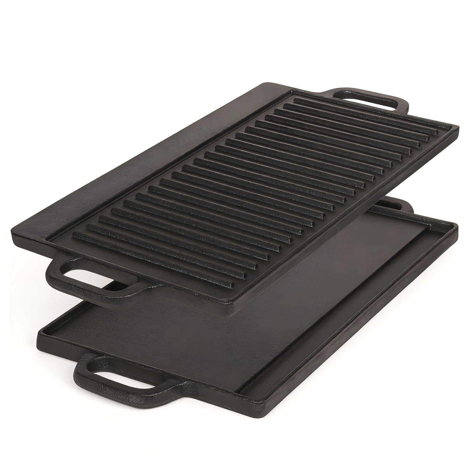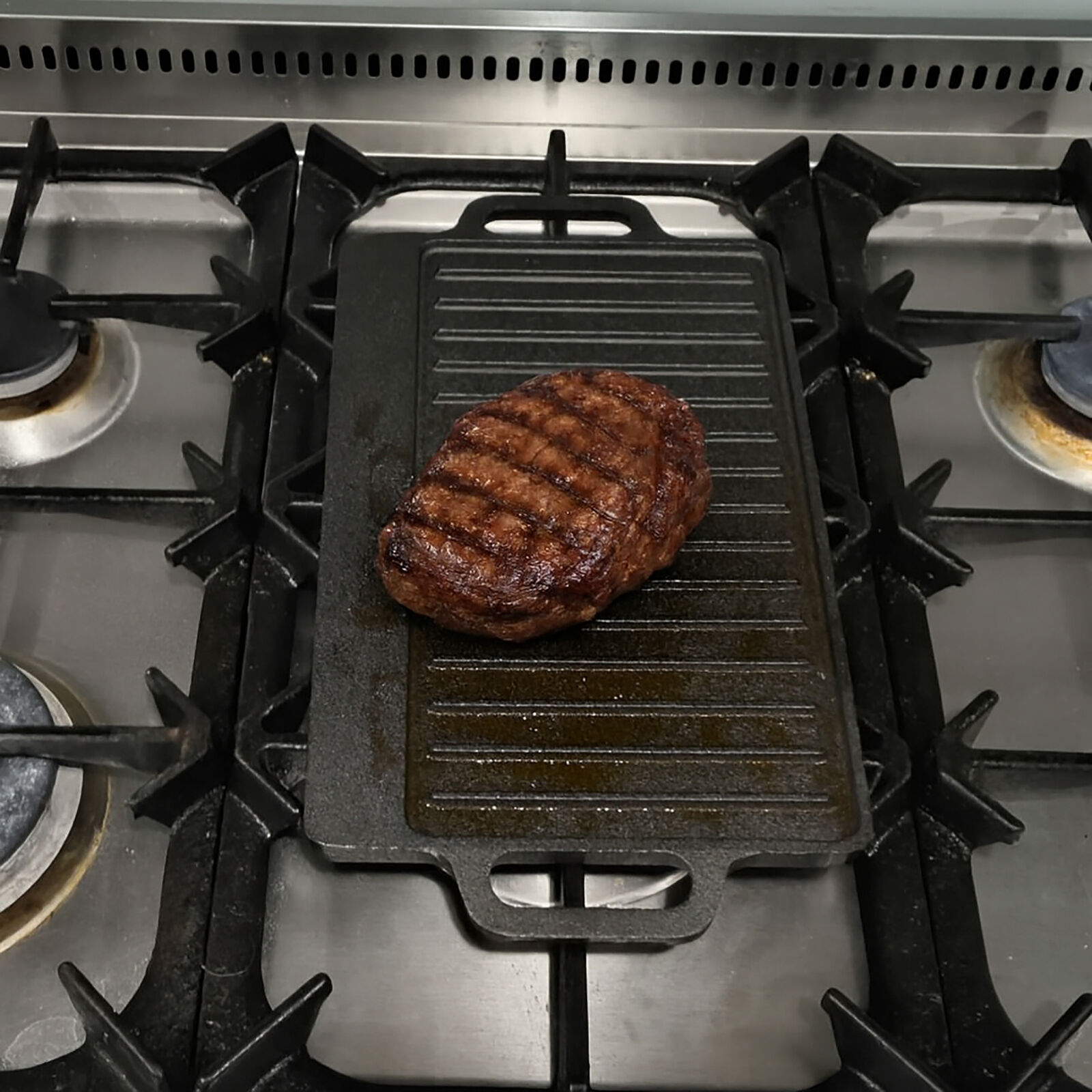 With a dual-sided design, you can choose the smooth flat griddle for pancakes, eggs, or stir-fries, or flip it over to use the ribbed grill side for steaks, burgers, and vegetables with authentic sear marks.