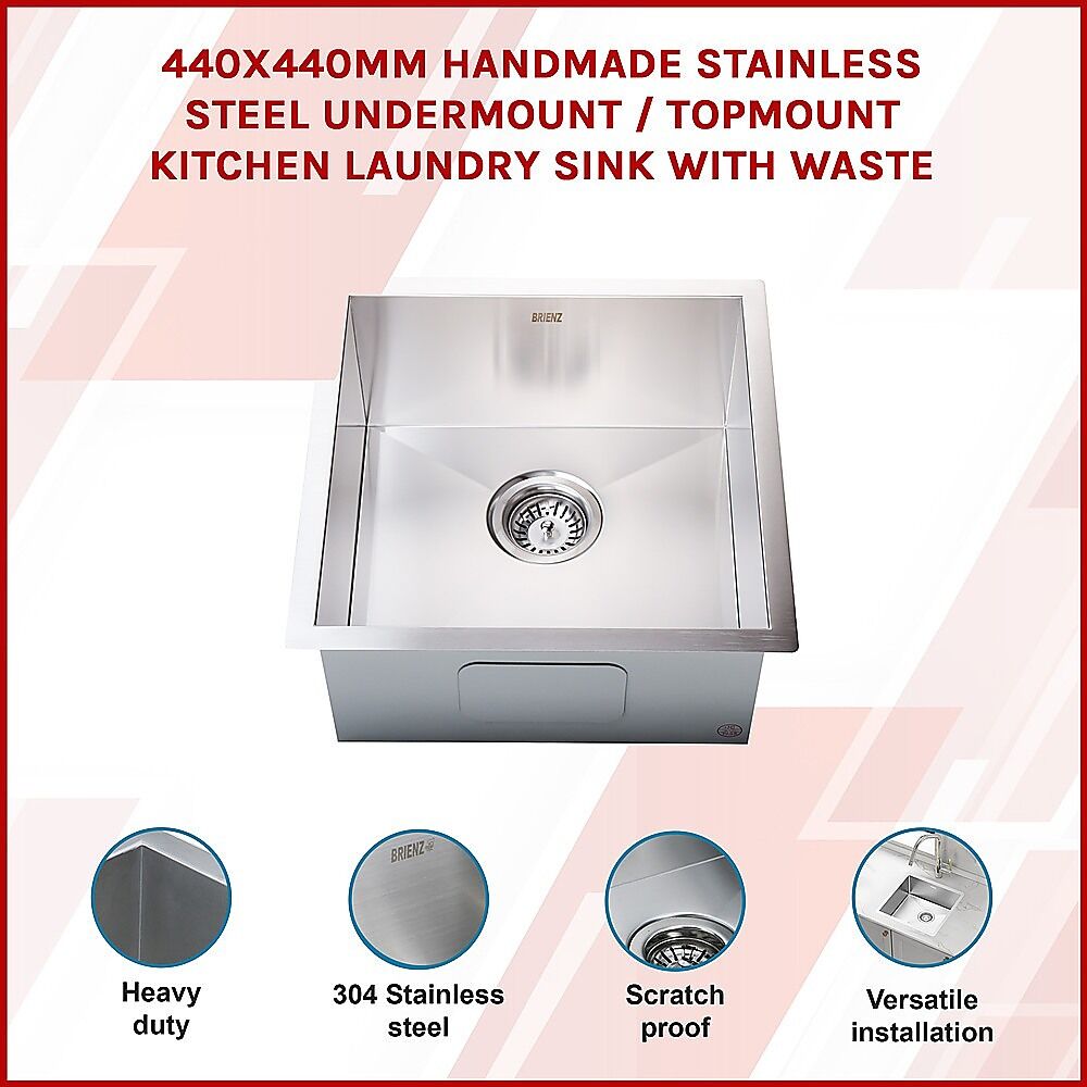 Features of the Square Cube Stainless Steel Kitchen / Laundry Sink 440 x 440mm: