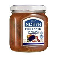 A rich and fiery staple straight out of Ukraine, Nizhyn's Roasted Eggplant Relish in Adjika Sauce is a flavour-packed delight that brings authentic Eastern European warmth to your table. This traditional veggie spread is crafted from 55% roasted eggplant and 45% classic adjika – a bold blend of tomato, capsicum, garlic and spices that’ll have you coming back for seconds (or thirds). Perfect as a side, dip, sandwich topper or sneaky midnight snack.