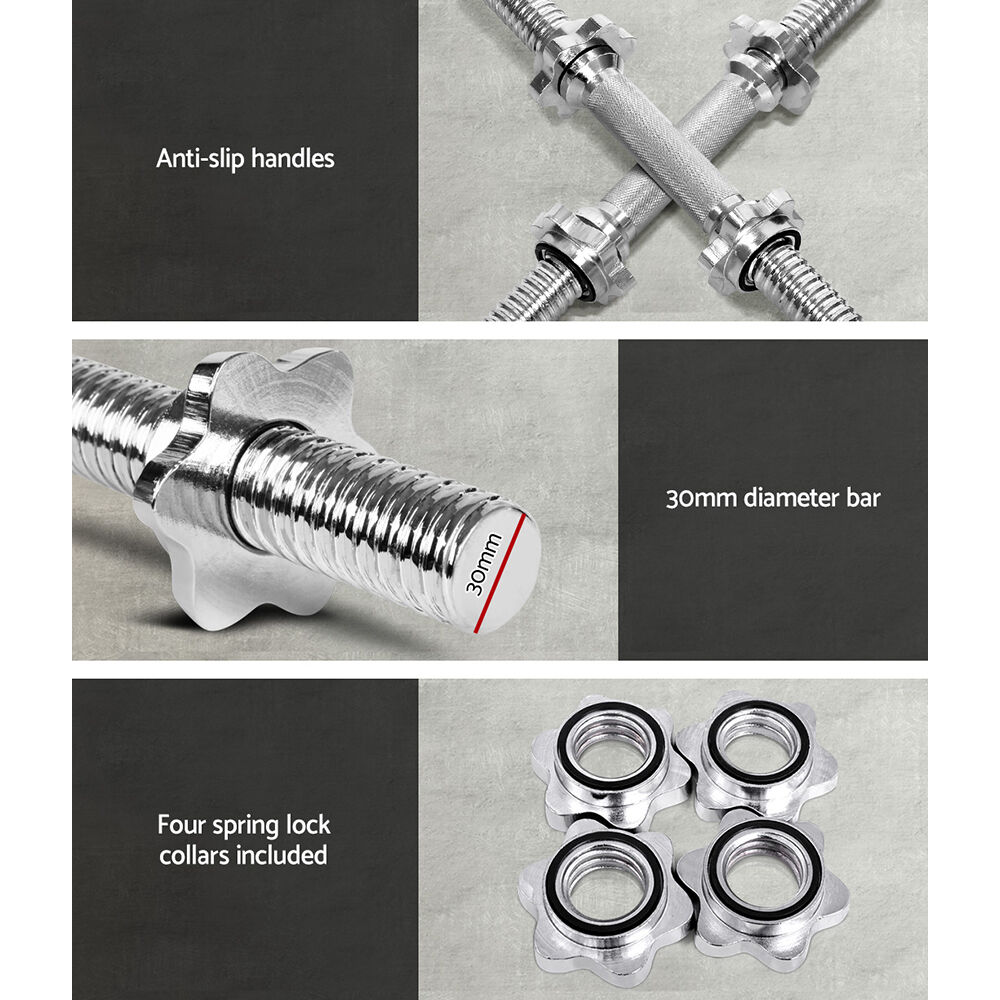 $41.35Finding an economical way to maintain your fitness? Do it at home with this solid chrome plated steel Dumbbell Bars. You can use the bar with any standard 31mm-35mm hole weight plates, and it holds up to 150kg so you can work out at any weight.