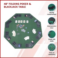 Portable, lightweight, easy to store, and durable, all without sacrificing the feel of the game - this 48 Folding Poker Blackjack Table has it all.