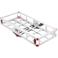 VEVOR 49.4 x 22.4 x 7.1 inch quality rustproof aluminum hitch cargo carrier can support up to 500lbs of cargo, gear, or equipment. Lightweight aluminum make the frame easy to install.