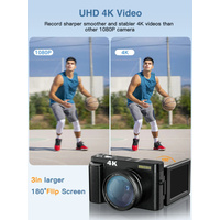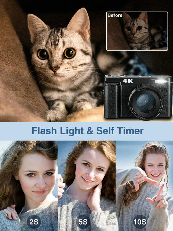 Whether you're a beginner photographer or an aspiring content creator, this 4K Digital Camera delivers everything you need in one stylish, compact package. Capture vibrant 48MP stills and ultra-clear 4K videos with the added benefit of electronic image stabilization for smooth, shake-free results. The 180° flip screen makes it effortless to frame your shots from any angle — ideal for vlogging, group photos, and creative compositions.