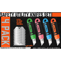 4Pc Box Cutter Snap Off Utility Knife Retractable Grip Handle 10x Spare Blades