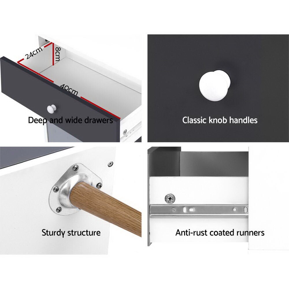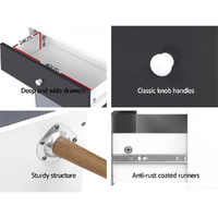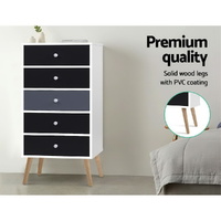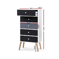 $81.77A design that is Scandinavian-inspired and while still reminiscent of decades-old influences, our Artiss 5-drawer Tallboy offers full functionality with subtle style. Made from quality particle board and a smooth paper veneer finish, the two-tone tallboy adds chic appeal to your décor and is the perfect choice to grace a dressing room, bedroom, living room or any other space in your home or establishment. The five generous-sized drawers provide ample space for all your clothing, fashion accessories, personal essentials and more. The splayed legs offer a unique, reliable stance, while the classic knob handles and smooth anti-rust metal drawer slides offer smooth, hassle-free use every time. Not sure this piece will suit your home? Take advantage of the latest 3D augmented reality technology to see it first hand – just scan the QR code on our website and decide for yourself!