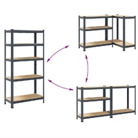 These storage shelves are an excellent choice for both residential and commercial storage, providing plenty of space to keep all items neatly organised. Sturdy material: The storage rack consists of a steel frame and engineered wood boards. The steel frames guarantee sturdiness and stability, while the engineered wood offers strength, stability, and resistance to moisture.Strong load capacity: Thanks to the thick material, a reinforcement bar below each shelf, and boltless shelving design, this garage storage shelf has a great load capacity.Flexible storage: This storage shelf can be divided into two separate small racks. Also, the layers are height-adjustable. Thus, the shelf provides ample storage space for all items you want to store and always keeps your space neat and well-organised. Warning:To prevent it from tipping over, this product must be used with the wall attachment device (not provided).