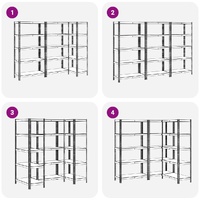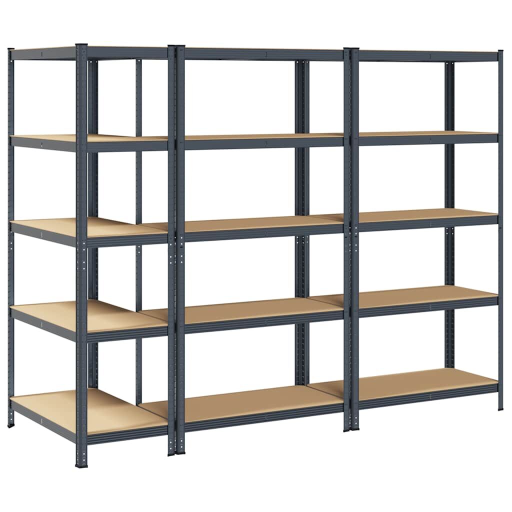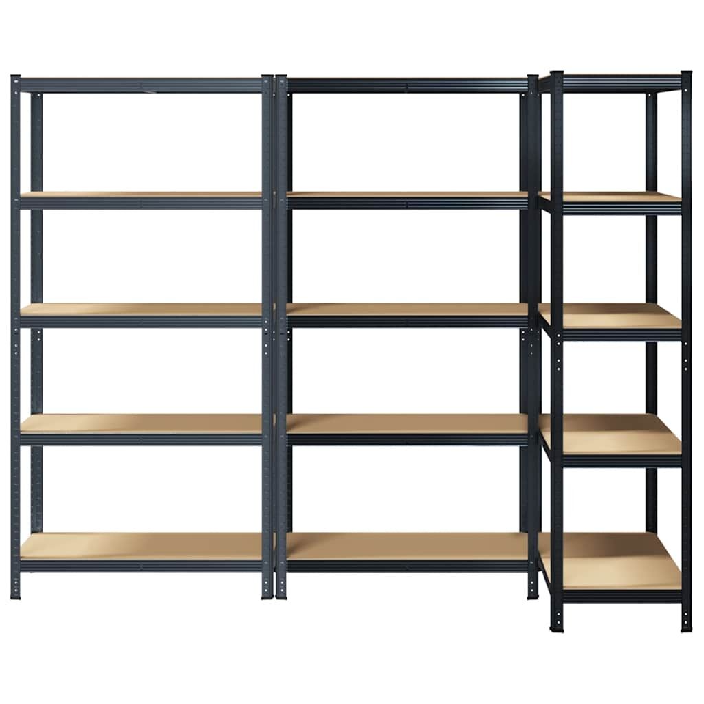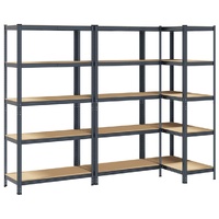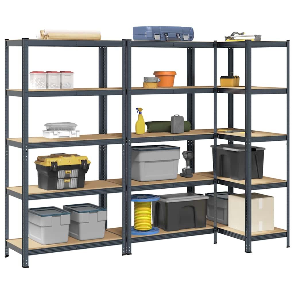 These storage shelves are an excellent choice for both residential and commercial storage, providing plenty of space to keep all items neatly organised. Sturdy material: The storage rack consists of a steel frame and engineered wood boards. The steel frames guarantee sturdiness and stability, while the engineered wood offers strength, stability, and resistance to moisture.Strong load capacity: Thanks to the thick material, reinforcement bars below each shelf, and boltless shelving design, this garage storage shelf has a great load capacity.Flexible storage: This storage shelf can be divided into two separate small racks. Also, the layers are height adjustable. Thus, the shelf provides ample storage space for all items you want to store and always keeps your space neat and well-organised. Warning:To prevent it from tipping over, this product must be used with the wall attachment device (not provided).