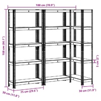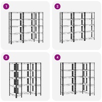 These storage shelves are an excellent choice for both residential and commercial storage, providing plenty of space to keep all items neatly organised. Sturdy material: The storage rack consists of a steel frame and engineered wood boards. The steel frames guarantee sturdiness and stability, while the engineered wood offers strength, stability, and resistance to moisture.Strong load capacity: Thanks to the thick material, a reinforcement bar below each shelf, and boltless shelving design, this garage storage shelf has a great load capacity.Flexible storage: This storage shelf can be divided into two separate small racks. Also, the layers are height-adjustable. Thus, the shelf provides ample storage space for all items you want to store and always keeps your space neat and well-organised. Warning:To prevent it from tipping over, this product must be used with the wall attachment device (not provided).