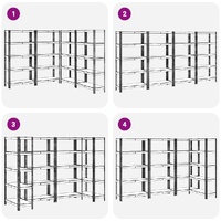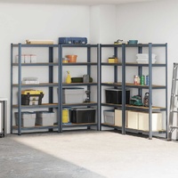 These storage shelves are an excellent choice for both residential and commercial storage, providing plenty of space to keep all items neatly organised. Sturdy material: The storage rack consists of a steel frame and engineered wood boards. The steel frames guarantee sturdiness and stability, while the engineered wood offers strength, stability, and resistance to moisture.Strong load capacity: Thanks to the thick material, a reinforcement bar below each shelf, and boltless shelving design, this garage storage shelf has a great load capacity.Flexible storage: This storage shelf can be divided into two separate small racks. Also, the layers are height-adjustable. Thus, the shelf provides ample storage space for all items you want to store and always keeps your space neat and well-organised. Warning:To prevent it from tipping over, this product must be used with the wall attachment device (not provided).