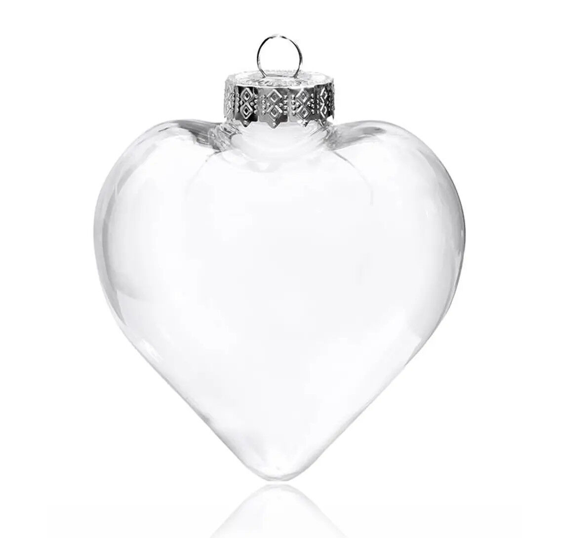 5 Pack of Clear Glass Hanging Memory Heart Shape Bauble Ball
