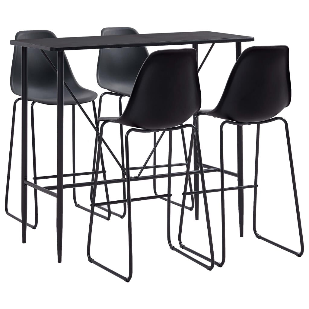 Featuring a modern and contemporary design, our bar set is perfect to go with any modern homes, bars, pubs, or restaurants. Its clean and contemporary design will complement any interior decor. The tabletop is made of MDF which is easy to clean. The powder-coated steel frame adds to the bar table's stability and sturdiness. The pub chairs have an ergonomically designed seat with integrated backrest in a modern, curved look. Additionally, they are easy to assemble. Our bar set is ideal for enjoying a few sips of wine in the bar, grabbing a bite at the counter, or for use as extra seats when you invite guests over. Delivery includes a bar table and 4 bar chairs.