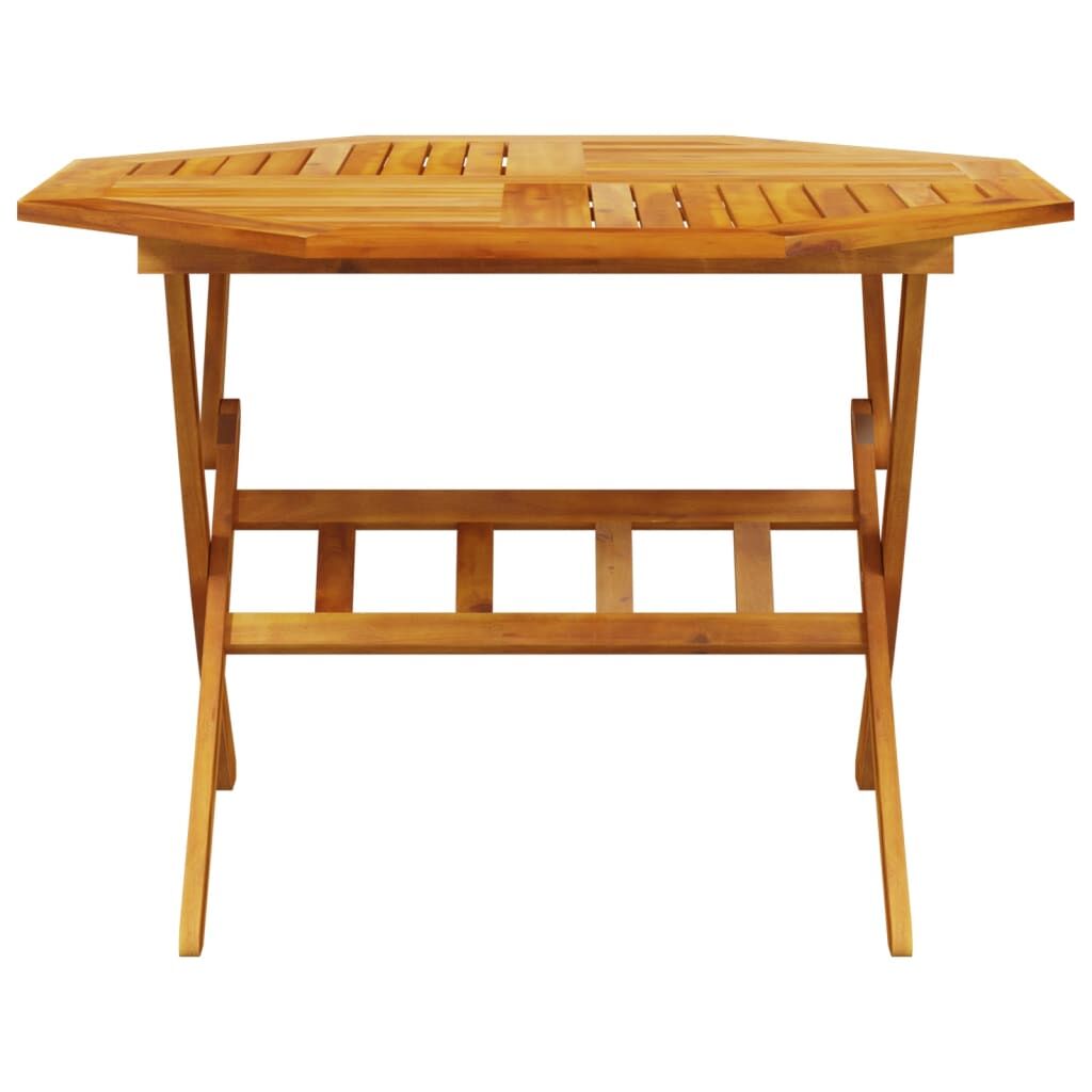 This folding garden dining set is a great choice for al fresco dining or just relaxing in the garden, backyard, or patio. Solid acacia wood: Solid acacia wood is a beautiful natural material. Acacia wood is a tropical hardwood, which is dense, sturdy, and durable.Foldable function: The outdoor dining set can be folded away to save space when not in use.Ventilated: This patio dining set with a slat design can allow water flow, which is not easy to rot and has a long service life.Stable top: The stable top of the dining table is ideal for placing your drink or any other necessity you need close at hand.Easy-to-clean surface: The oil-finished surface makes this garden dining furniture easy to clean with a damp cloth. Good to know:To make sure your outdoor furniture stays beautiful, we recommend protecting it with a waterproof cover.