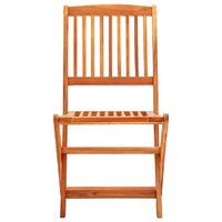 This wooden folding outdoor dining set has a rustic, timeless design and will be a great choice for dining in the garden or on the patio. The dining set is made of eucalyptus wood which is weather-resistant and durable for years of use. The oil finished surface is easy to clean with a damp cloth. In addition, the tabletop has a hole in its centre for holding a parasol. The table and the chairs can be folded to save space when not in use. Note: In order to extend the life of your outdoor furniture, we recommend you to clean it regularly and do not leave it outdoors without protection unnecessarily.Clean: Use a mild soap solution.Storing: If possible, store in a cool, dry place indoors. If the product is stored outdoors, protect it with a waterproof cover. Wipe and dry the excess water or snow from flat surfaces after a rain or snowfall. Allow sufficient air circulation to avoid moisture-related damage.