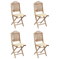This bamboo dining set with cushions has an elegant design and will add a touch of rustic charm to your dining. Made of solid bamboo, the garden dining set is strong and durable. It is also weather-resistant and waterproof, and easy to clean with a damp cloth. The table and the chairs are all foldable to save storage space when not in use. What's more, the included cushions provide extra comfort while lounging. It is made of 100% polyester that has been treated to make it water-resistant. Each cushion has two sets of ropes to fix it on the dining chair tightly.