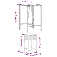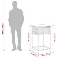 This trendy garden bar set, combining both style and function, is surely meant to be the centrepiece of your garden, patio, and any other living space. Durable material: PE rattan, also known as poly rattan, is a strong, low-maintenance synthetic material that looks like natural rattan. It's lightweight, easy to clean, and commonly used for outdoor furniture due to its durability and weather-resistant properties.Comfortable seat experience: This outdoor furniture, complete with thickly padded cushions, offers a comfortable seating experience.Removable and washable cover: These seat cushions feature removable covers for easy washing and maintenance.Glass tabletop: The outdoor table's top is made from strong and durable tempered glass, making it easy to clean with a damp cloth and adding a touch of elegance to your outdoor space.Robust and stable frame: The powder-coated steel frame ensures that the garden furniture is strong and stable for daily outdoor use. Good to know:To make sure your outdoor furniture stays beautiful, we recommend protecting it with a waterproof cover.