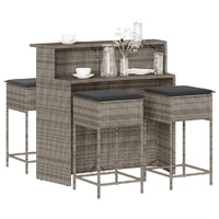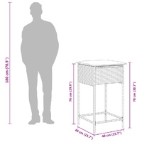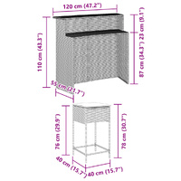 This trendy garden bar set, combining both style and function, is surely meant to be the centrepiece of your garden, patio, and any other living space. Durable material: PE rattan, also known as poly rattan, is a strong, low-maintenance synthetic material that looks like natural rattan. It's lightweight, easy to clean, and commonly used for outdoor furniture due to its durability and weather-resistant properties.Comfortable seat experience: This outdoor furniture, complete with thickly padded cushions, offers a comfortable seating experience.Removable and washable cover: These seat cushions feature removable covers for easy washing and maintenance.Robust and stable frame: The powder-coated steel frame ensures that the garden furniture is strong and stable for daily outdoor use. Good to know:To make sure your outdoor furniture stays beautiful, we recommend protecting it with a waterproof cover.