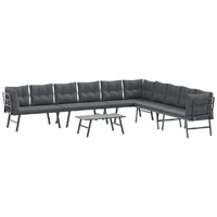 This garden bench set is perfect for outdoor use and is designed to be the focal point of your garden, terrace, patio, etc. Robust and stable frame: The powder-coated steel frame is strong, stable, durable, and resistant to corrosion and harsh weather, ensuring long-lasting performance.Comfy design: The slightly curved backrests add extra seating comfort for the bench.Comfortable seat experience: This outdoor furniture, complete with a thickly padded cushion, offers a comfortable seating experience.Sturdy tabletop: The sturdy tabletop of the sofa table is perfect for placing your drinks, food, and other decorative items.Modern design: The coffee table not only adds charm to your living space but also effortlessly complements a wide range of furniture styles. Good to know:To make sure your outdoor furniture stays beautiful, we recommend protecting it with a waterproof cover.
