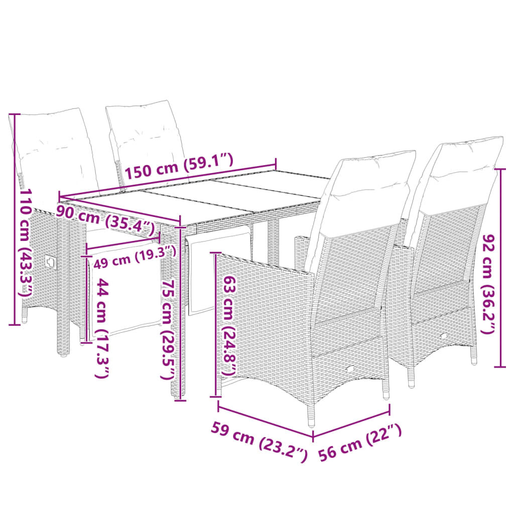 Enjoy a coffee or have a chat with your family and friends in the garden, backyard, or on the balcony with this comfortable bistro set! Durable material: PE rattan, also known as poly rattan, is a strong, low-maintenance synthetic material that looks like natural rattan. It's lightweight, easy to clean, and commonly used for outdoor furniture due to its durability and weather-resistant properties.Adjustable backrest and footrest: This garden seat has a handle. You can adjust the backrest and footrest to any position by pulling the handle, and quickly return it to its original position.Comfortable seat experience: This outdoor furniture, complete with thickly padded cushions, offers a comfortable seating experience.Removable and washable cover: These seat cushions feature removable covers for easy washing and maintenance. The back cushions have a flap at the back for easy attachment to the backrests.Stable and easy-to-clean tabletop: This garden table has an acacia wood top that is sturdy, durable, and easy to clean with a damp cloth. Good to know:To make sure your outdoor furniture stays beautiful, we recommend protecting it with a waterproof cover.